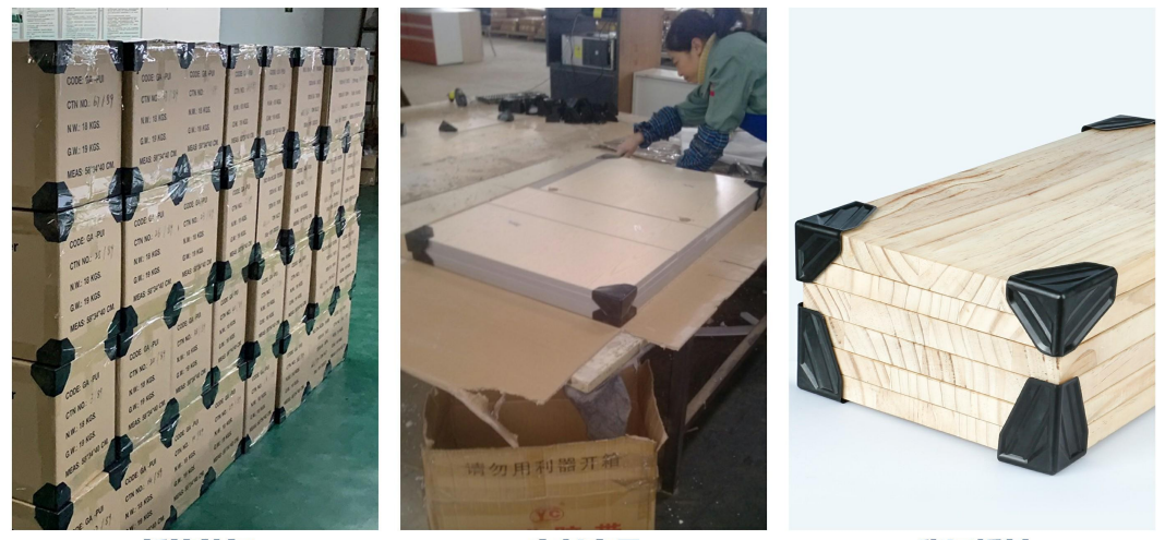 Tristranski plastični kotni ščitnik za kartone je primeren za zaščito večine materialov med transportom ali rokovanjem, kot so steklo, leče, kopalniška oprema, akril, PVC plošče, ploščice, okvirji, aluminij, les in pohištvene plošče.